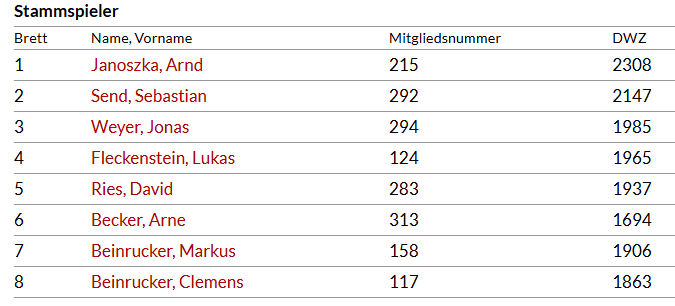 Hier der Link zu den Infos der 1. Mannschaft in der Verbandsliga Süd in Nuliga
