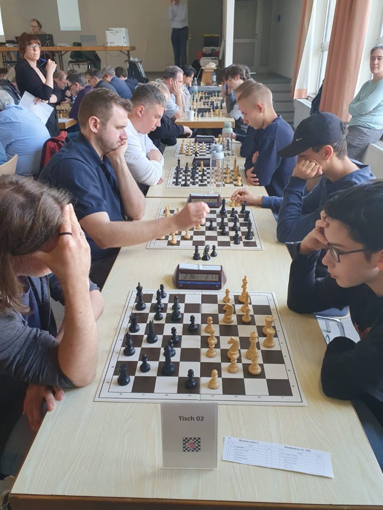 Beide Mannschaften des Schachklubs Niederbrechen traten mit jeweils fünf Spielerinnen und Spielern an. In der ersten Mannschaft wurde regelmäßig rotiert, während ich in der zweiten Mannschaft als Mannschaftsführerin fungierte und selbst lediglich zweimal zum Einsatz kam.